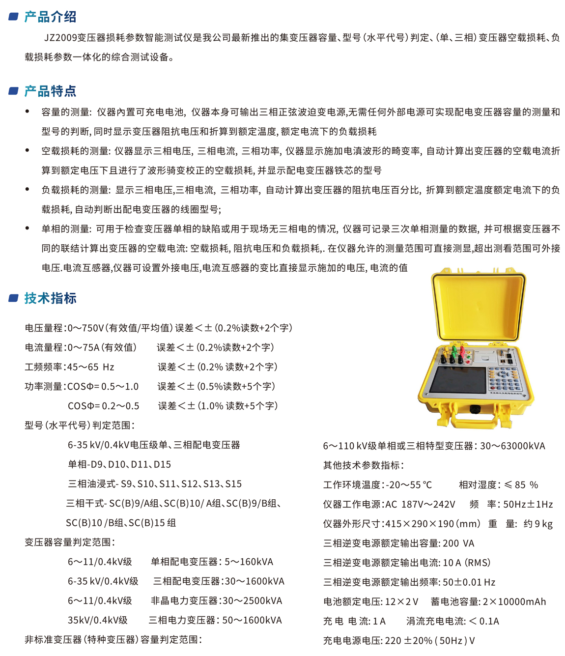 JZ2009 變壓器損耗參數智能測試儀